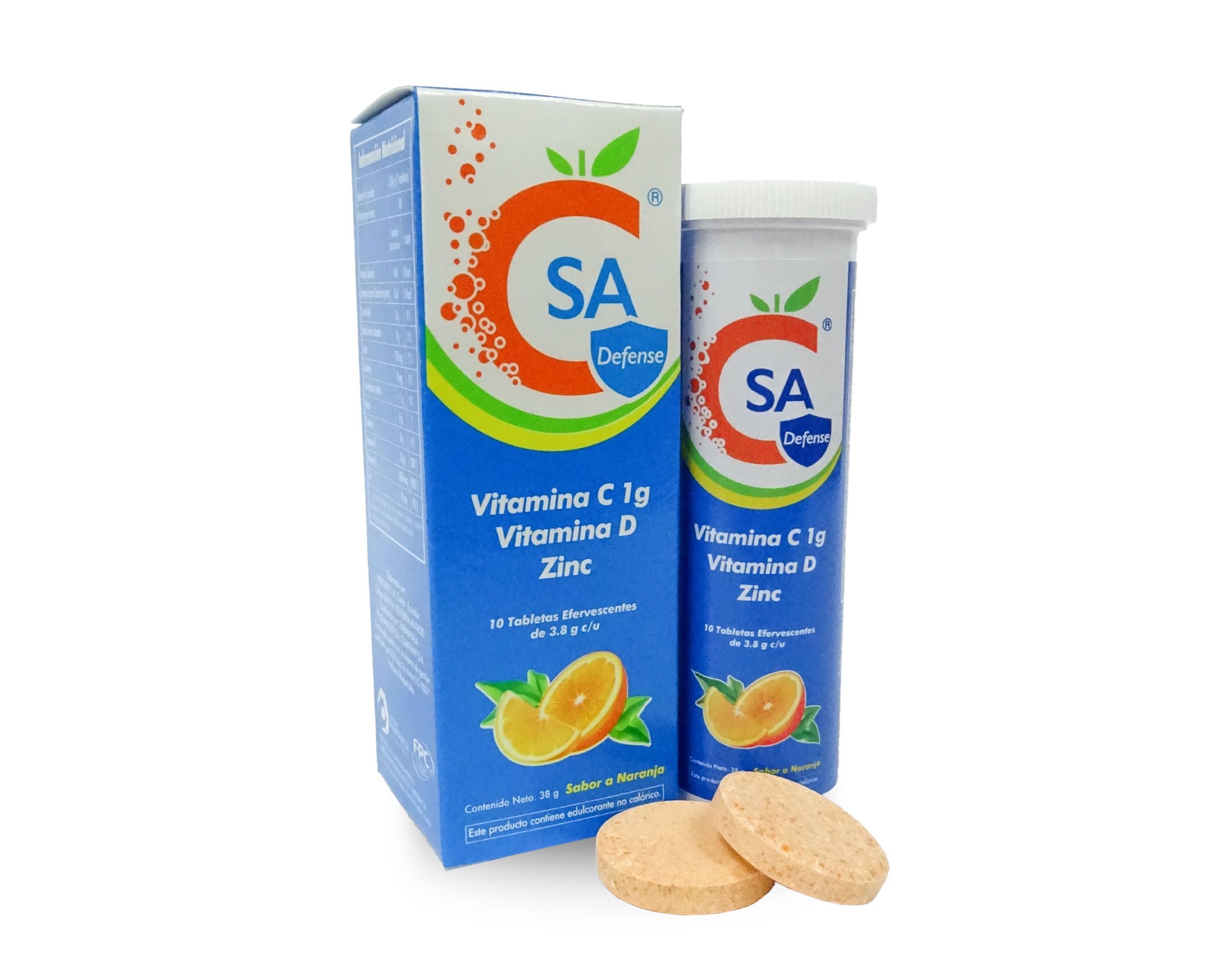 C-SA DEFENSE es un suplemento alimenticio que contiene Vitamina C, Zinc y Vitamina D.